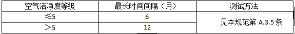 1 空氣潔凈度測(cè)試應(yīng)符合表A.2.2-1的規(guī)定: